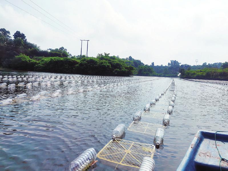 当然并不是直接喂牛粪,不然那么臭,鱼也不爱吃啊。黄炳权先是将牛粪进行发酵,除去氨、氮,然后把发酵过的牛粪堆在鱼塘边,随着雨水流入鱼塘,给藻类提供营养。